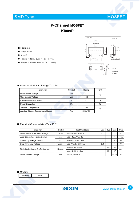 P-Channel MOSFET KI009P