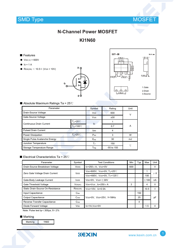 N-Channel Power MOSFET KI1N60