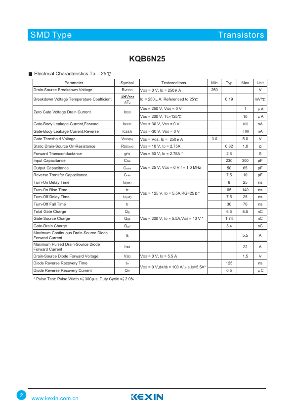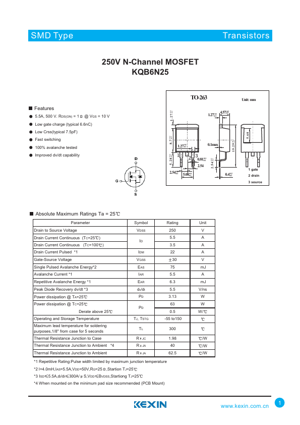 250V N-Channel MOSFET KQB6N25