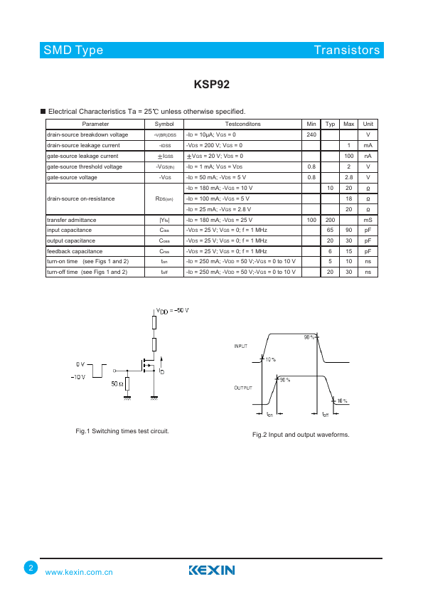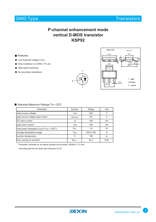 P-channel enhancement mode vertical D-MOS transistor KSP92