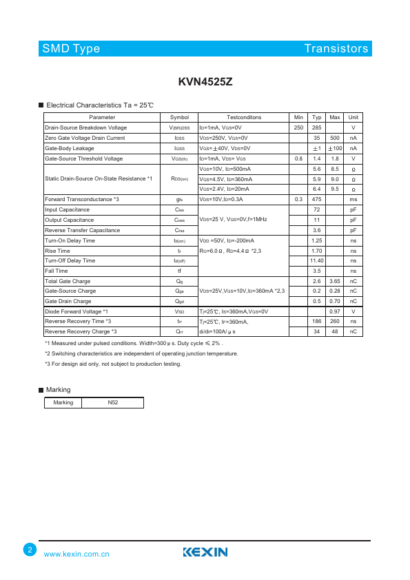 250V N-Channel Enhancement Mode MOSFET KVN4525Z
