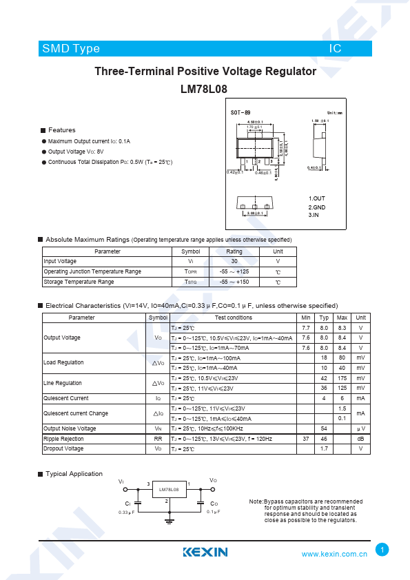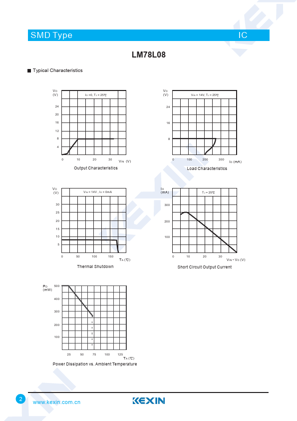 Maximum Output current IO: 0.1A Output Voltage VO: 8V Continuous Total Dissipation PD: 0.5W (Ta = 25 )