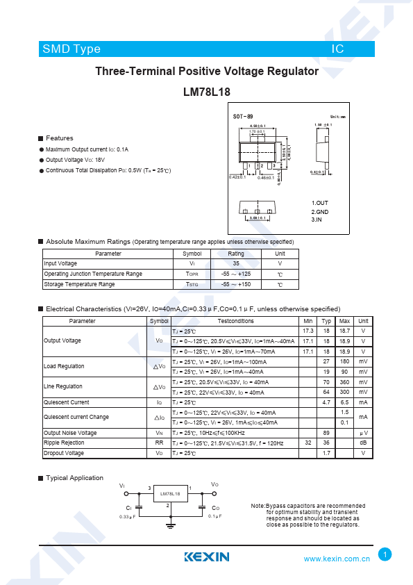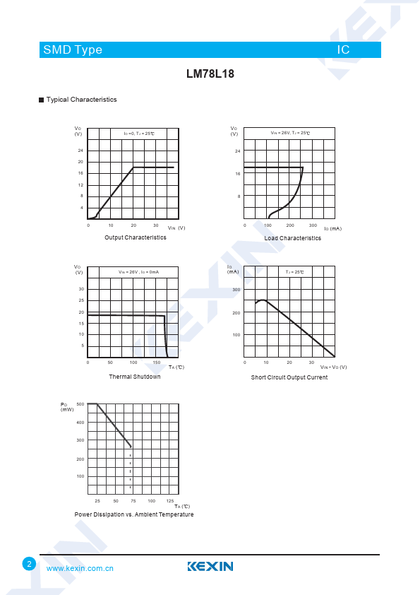 Maximum Output current IO: 0.1A Output Voltage VO: 18V Continuous Total Dissipation PD: 0.5W (Ta = 25 )