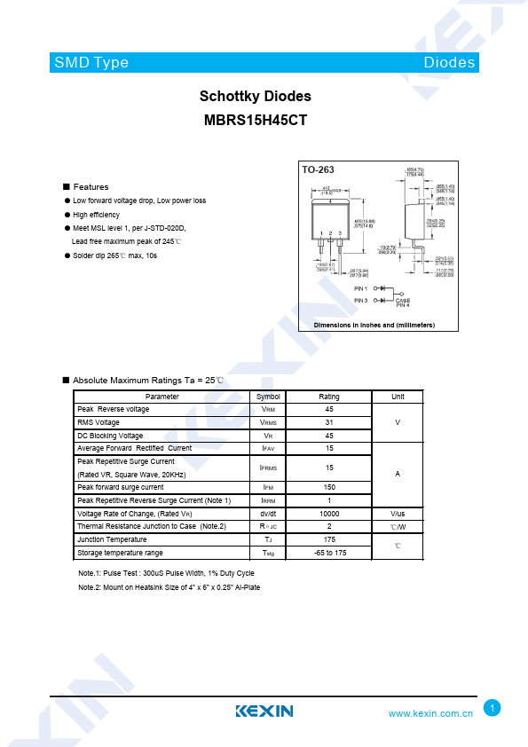 | Datasheet | MBRS15H45CT-Kexin.pdf |