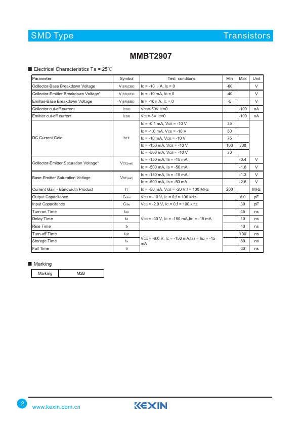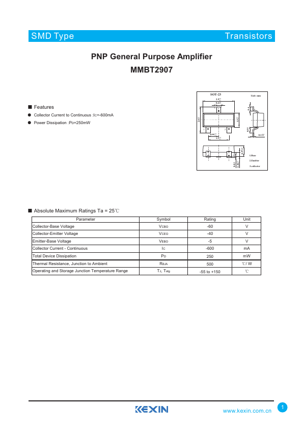 Overview: SMD Type Transistors PNP General Purpose Amplifier MMBT2907 ■.