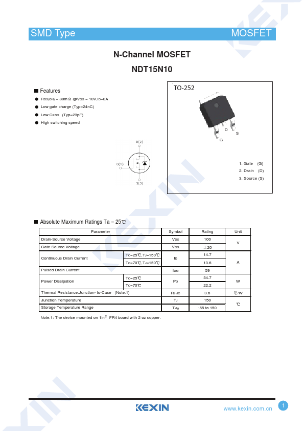 Note.1: The device mounted on 1in 2 FR4 board with 2 oz copper.