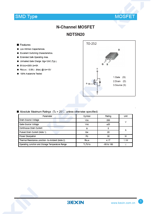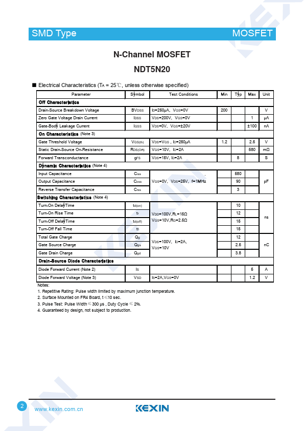 N-Channel MOSFET NDT5N20