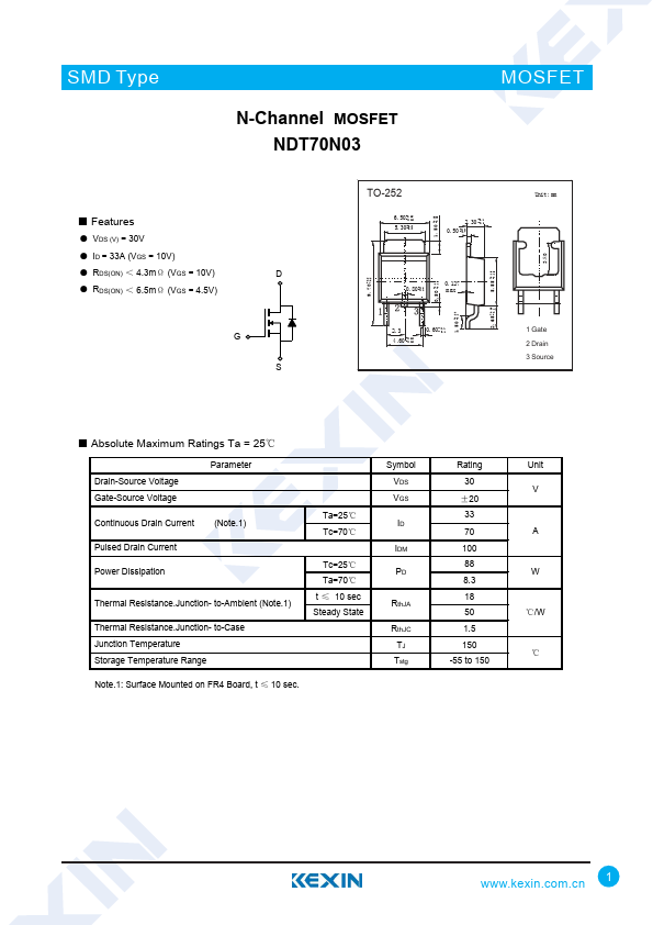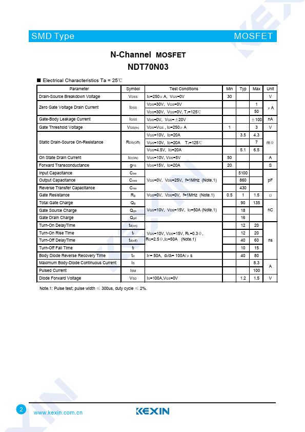 N-Channel MOSFET NDT70N03