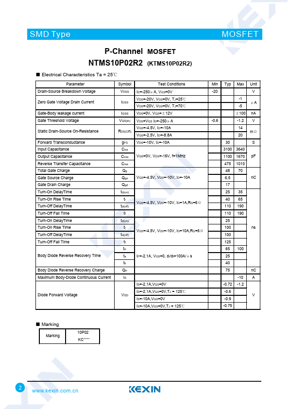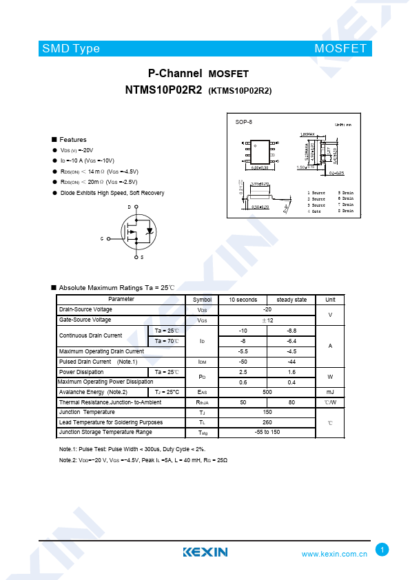 P-Channel MOSFET NTMS10P02R2 (KTMS10P02R2)