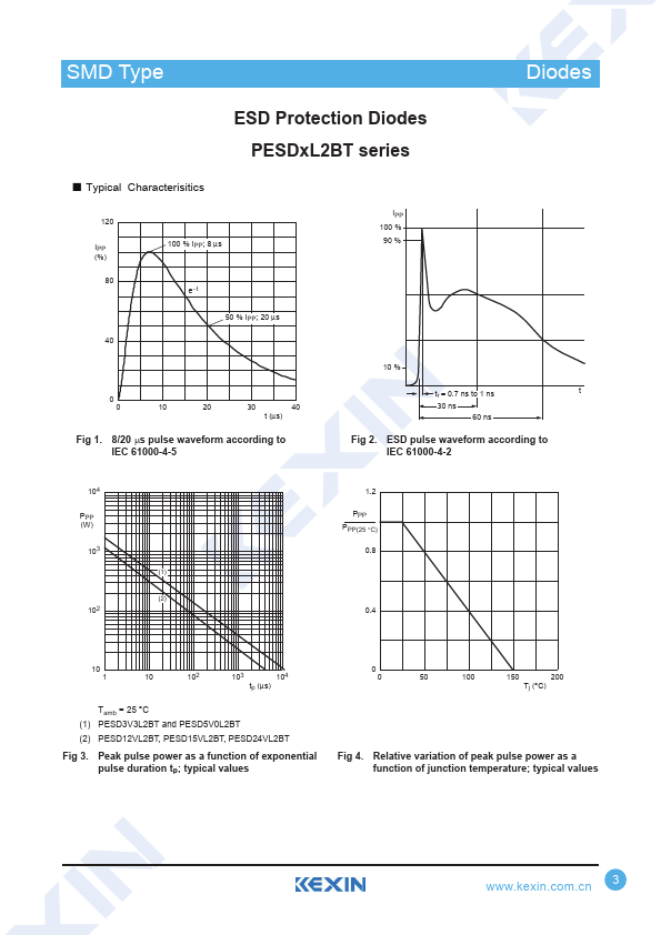 SMD Type TransDisiotodress ESD Protection Diodes PESDxL2BT series.
