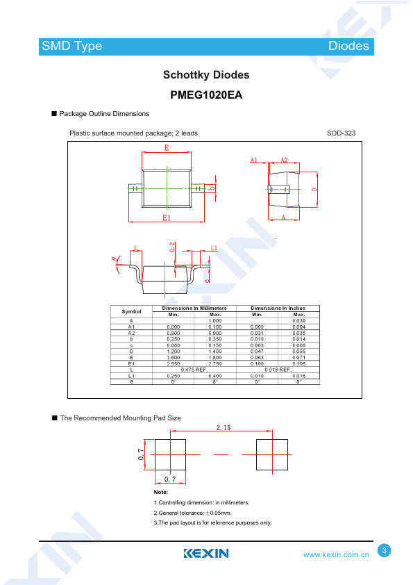 Overview: SMD Type Schottky Diodes PMEG1020EA TransDisiotodress Ƶ.