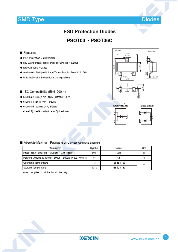 PSOT03 datasheet by Kexin Semiconductor.