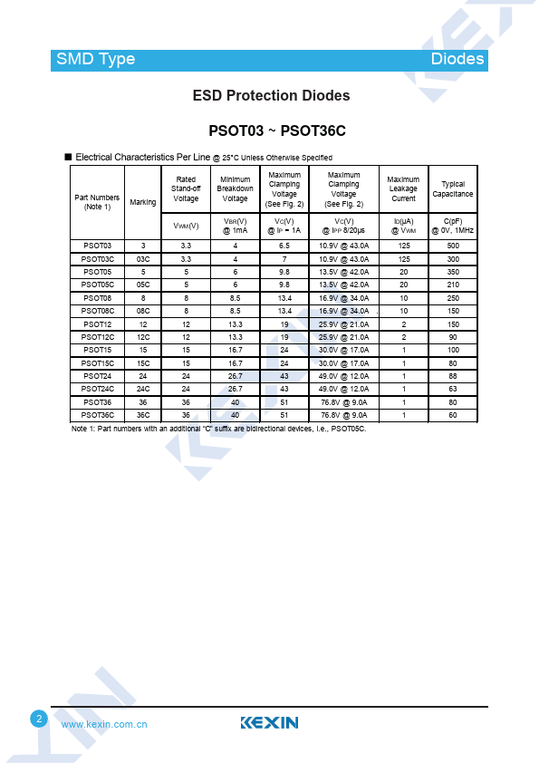 SMD Type ESD Protection Diodes PSOT03 ~ PSOT36C.