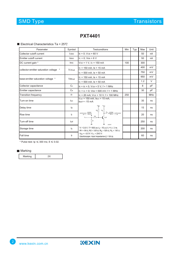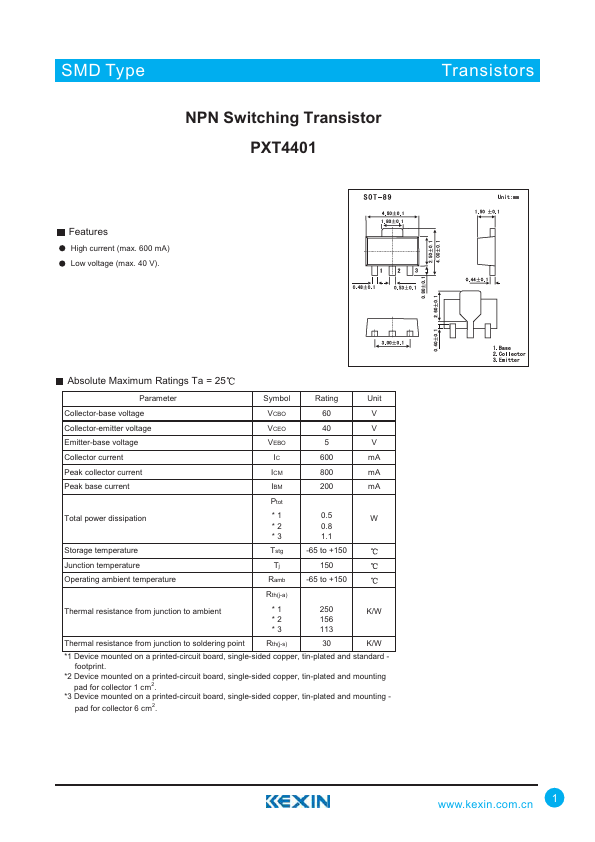Overview: SMD Type NPN Switching Transistor PXT4401 Transistors.