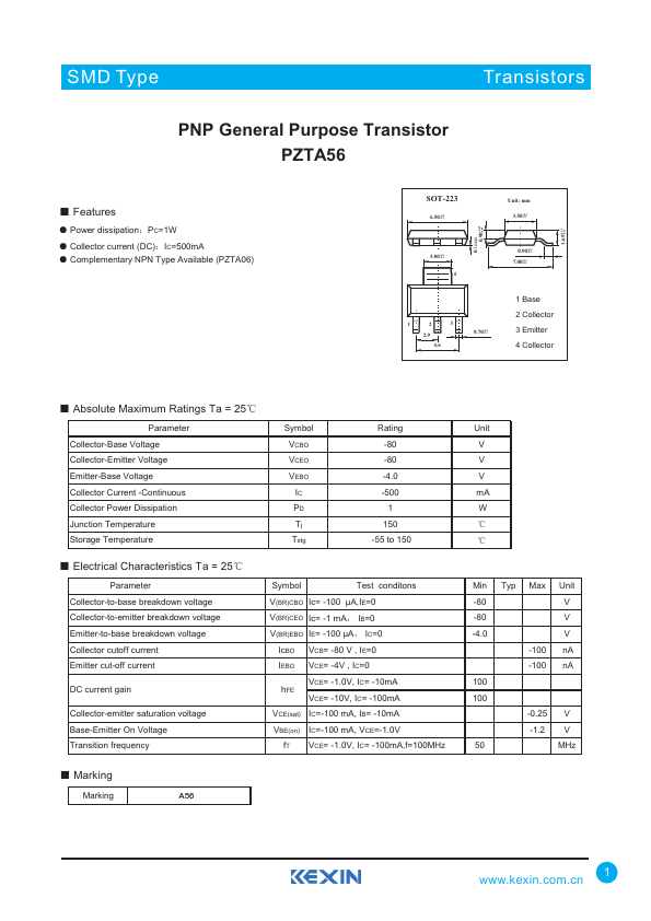 | Datasheet | PZTA56-Kexin.pdf |