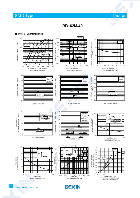 IF (mA) 1000 Ta=150bC Ta=125bC 100 10 Ta=-25bC Ta=25bC Ta=75bC REVERSE CURRENT : VF(mV) VF-IF CHARACTERISTICS FORWARD VOLTAGE : VR(V) VR-IR CHARACTERISTICS Ta=25bC VR=40V n=30pcs AVE.