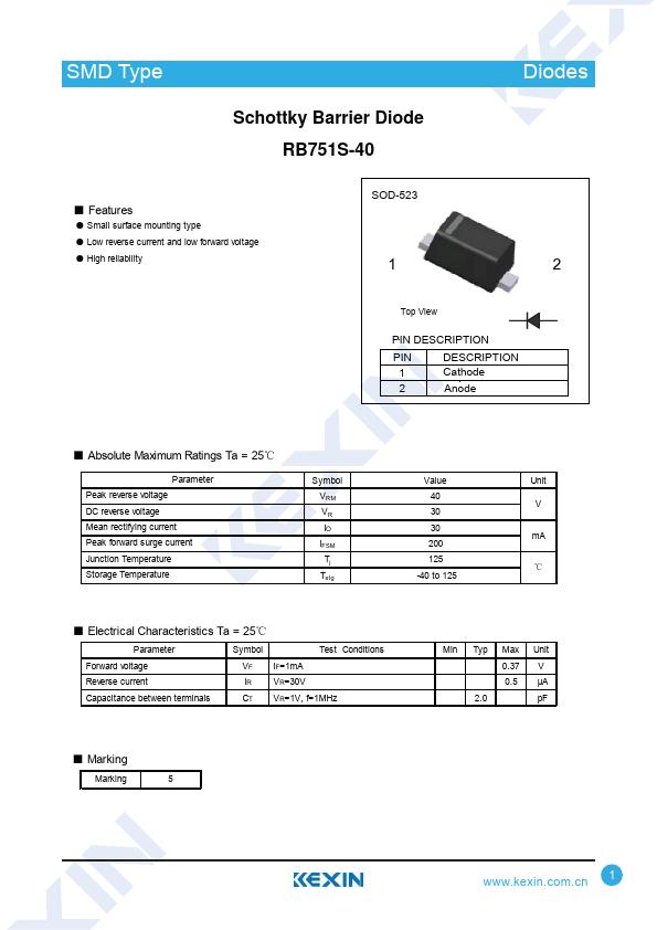 | Datasheet | RB751S-40-Kexin.pdf |