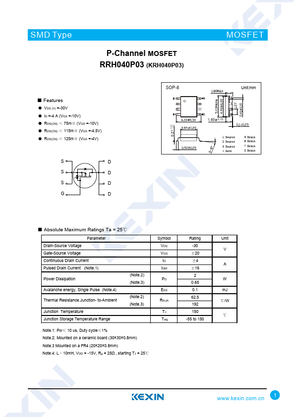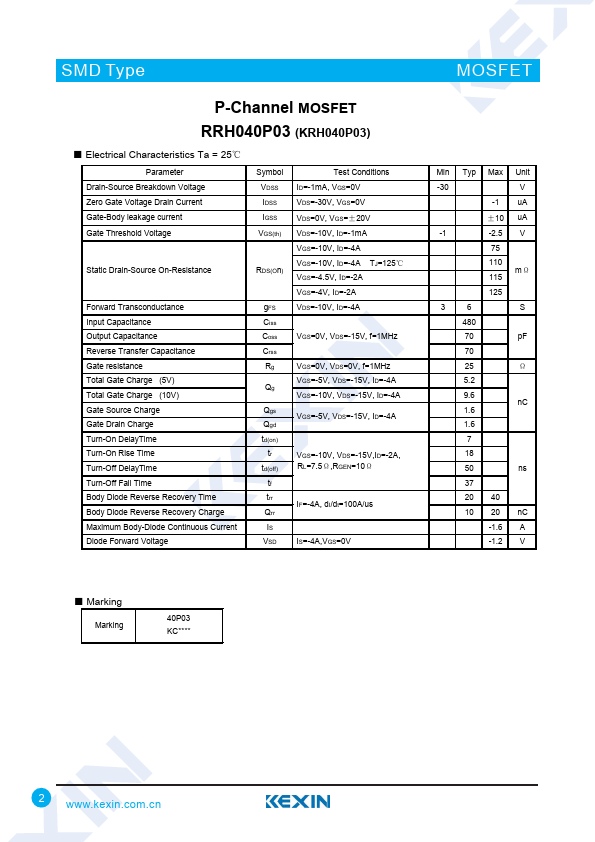 P-Channel MOSFET RRH040P03 (KRH040P03)