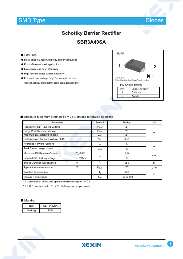 | Datasheet | SBR3A40SA-Kexin.pdf |