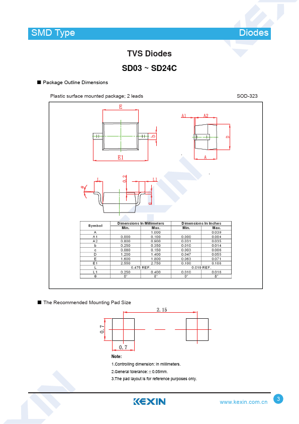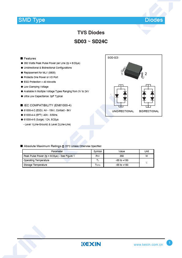 SMD Type TVS Diodes SD03 ~ SD24C T Diodes.