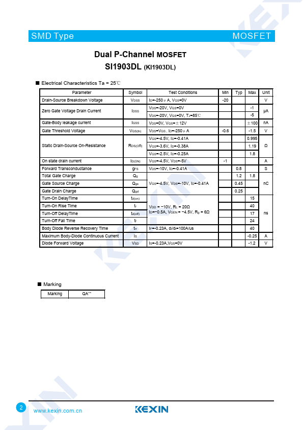 Dual P-Channel MOSFET SI1903DL (KI1903DL)