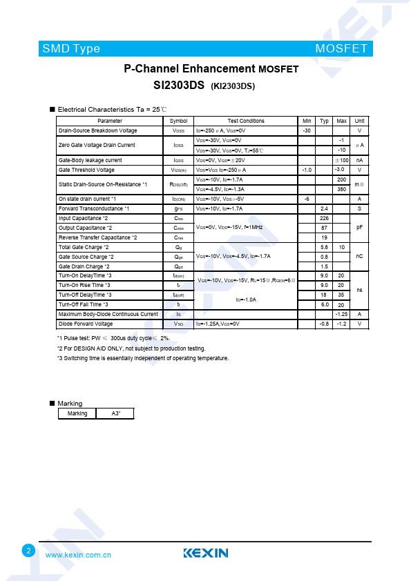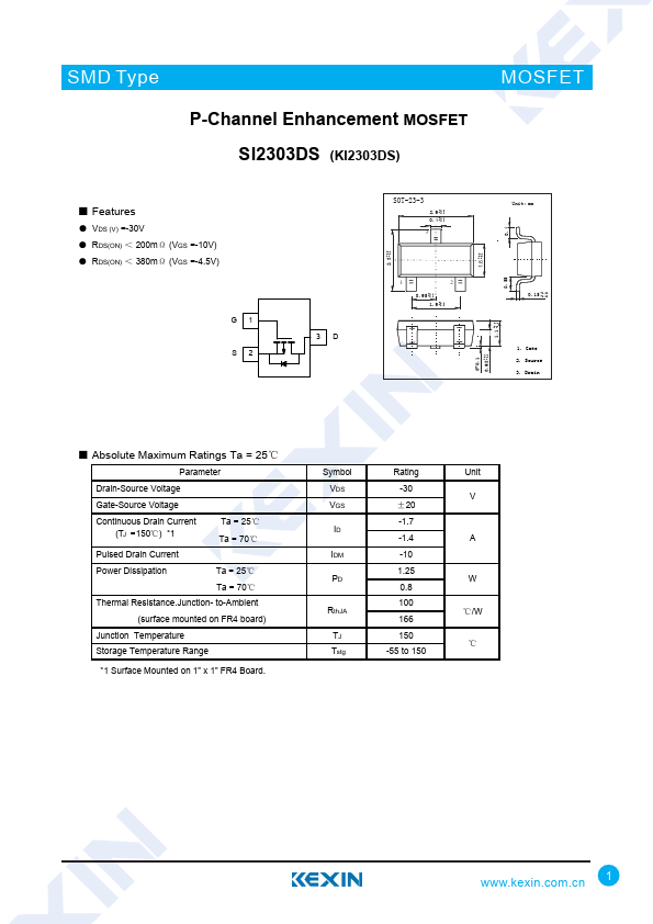 P-Channel Enhancement MOSFET SI2303DS (KI2303DS)