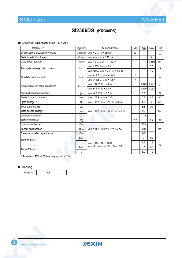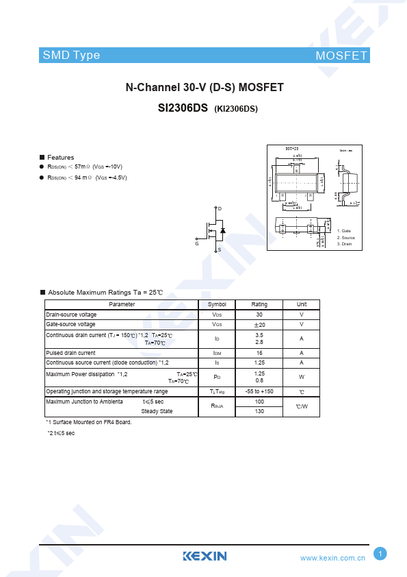 N-Channel 30-V (D-S) MOSFET SI2306DS (KI2306DS)
