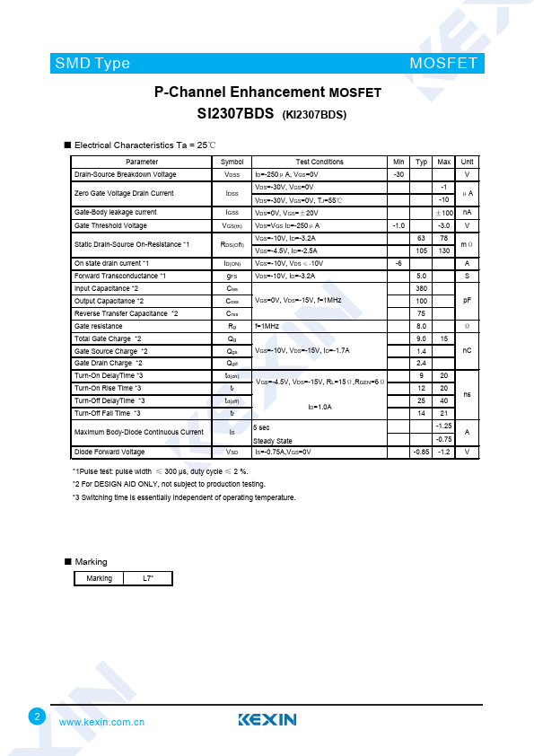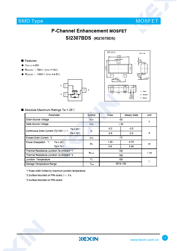P-Channel Enhancement MOSFET SI2307BDS (KI2307BDS)