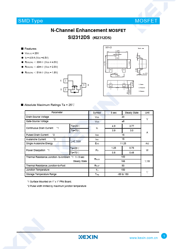 N-Channel Enhancement MOSFET SI2312DS (KI2312DS)