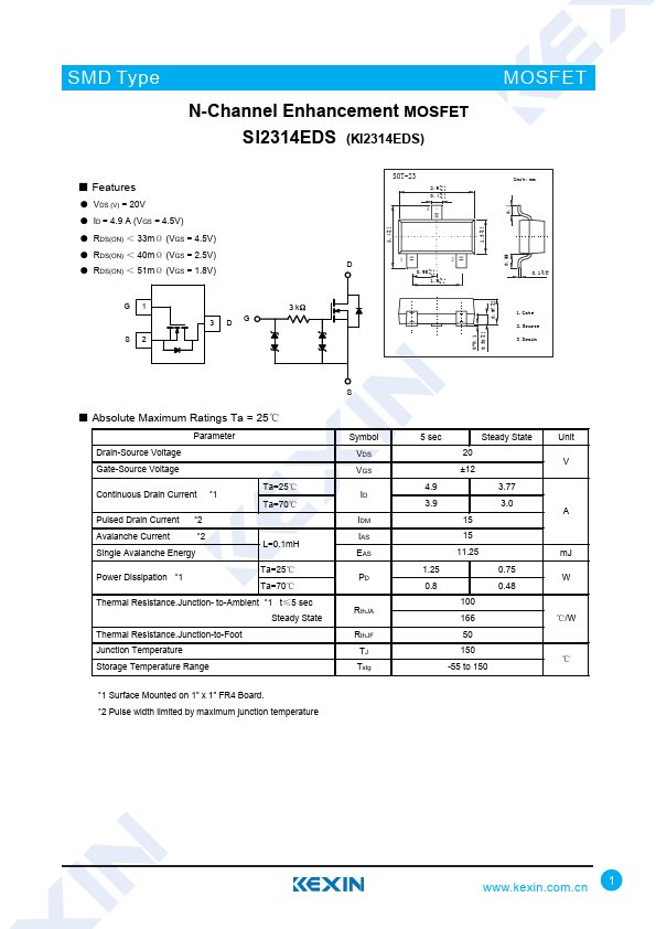 N-Channel Enhancement MOSFET SI2314EDS (KI2314EDS)