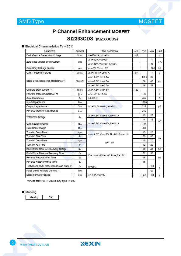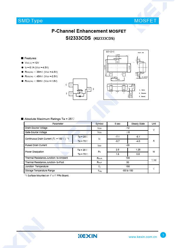 P-Channel Enhancement MOSFET SI2333CDS (KI2333CDS)