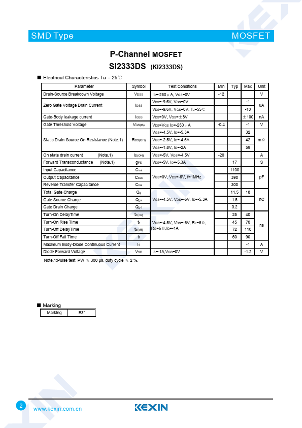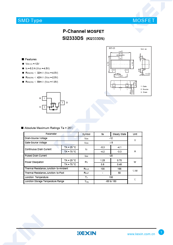 P-Channel MOSFET SI2333DS (KI2333DS)
