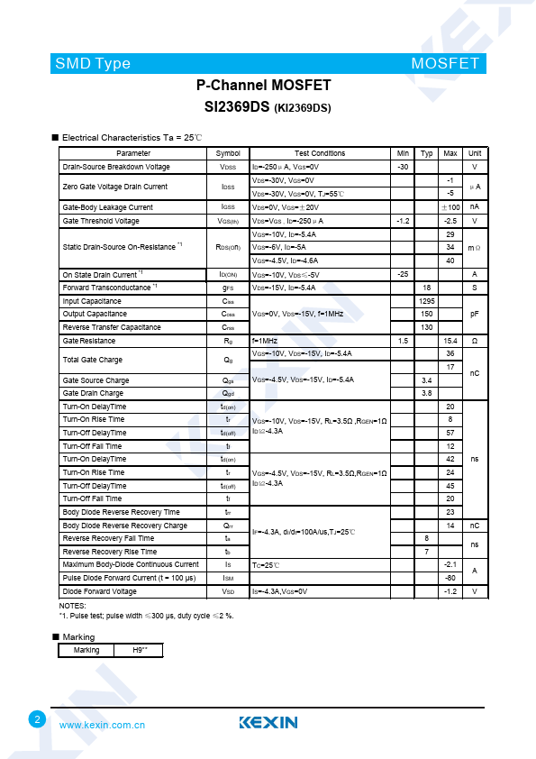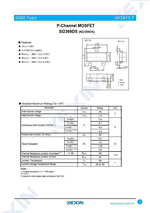 P-Channel MOSFET SI2369DS (KI2369DS)