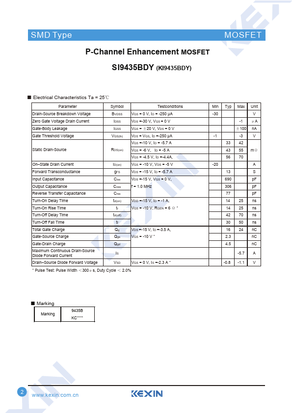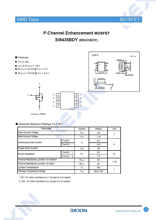 P-Channel Enhancement MOSFET SI9435BDY (KI9435BDY)