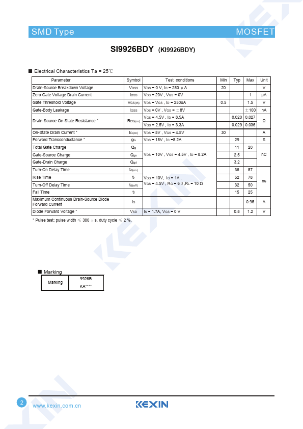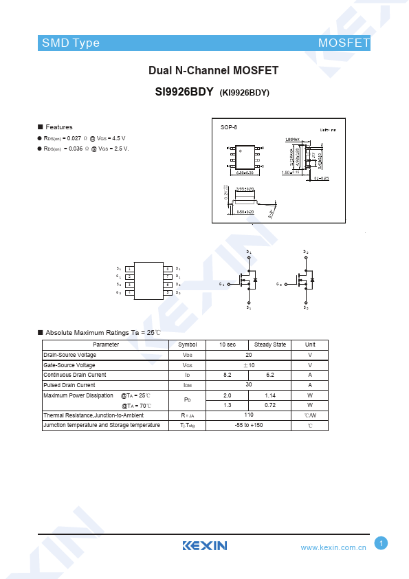 Dual N-Channel MOSFET SI9926BDY (KI9926BDY)