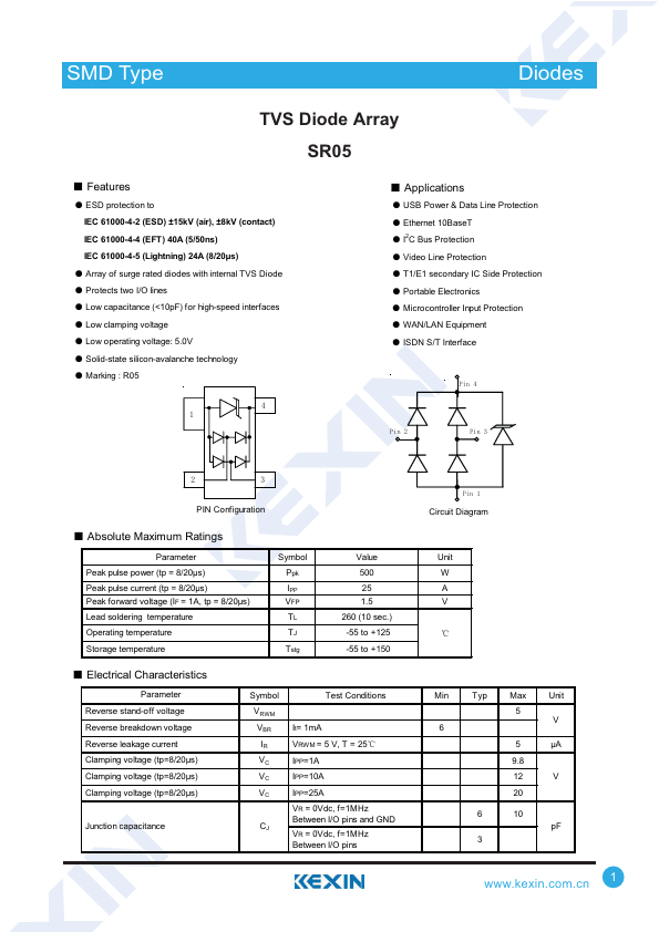 SR05 | LOW CAPACITANCE TVS ARRAY / ESD ARRAY | KD |