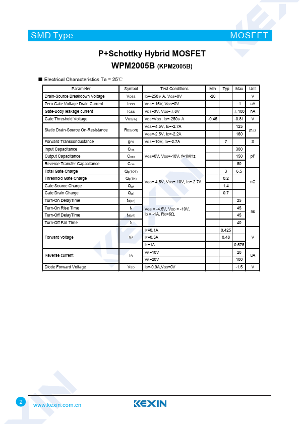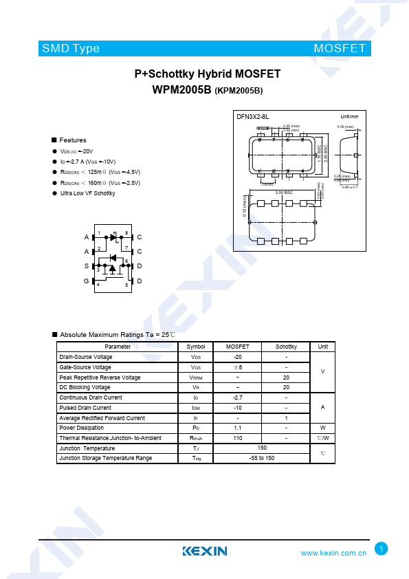 P+Schottky Hybrid MOSFET WPM2005B (KPM2005B)