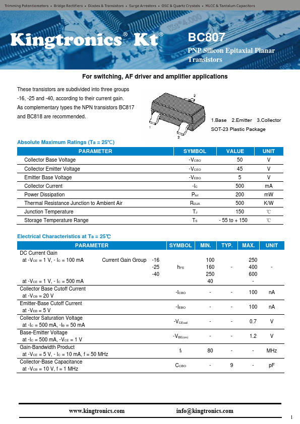 | Datasheet | BC807-Kingtronics.pdf |