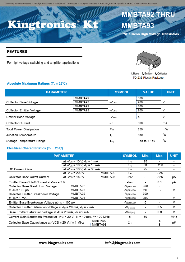 | Datasheet | MMBTA92-Kingtronics.pdf |