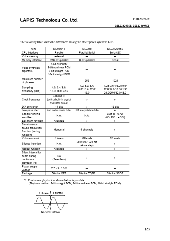 | ML22804 | ADPCM Algorithm-Based Speech Synthesis LSI |