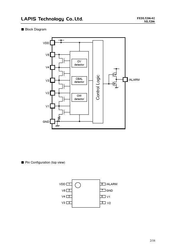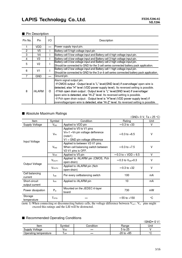 The ML5206 is a protection IC with cell balancing funcion for the 3- to 5-cell Li-ion rechargeable battery pack.