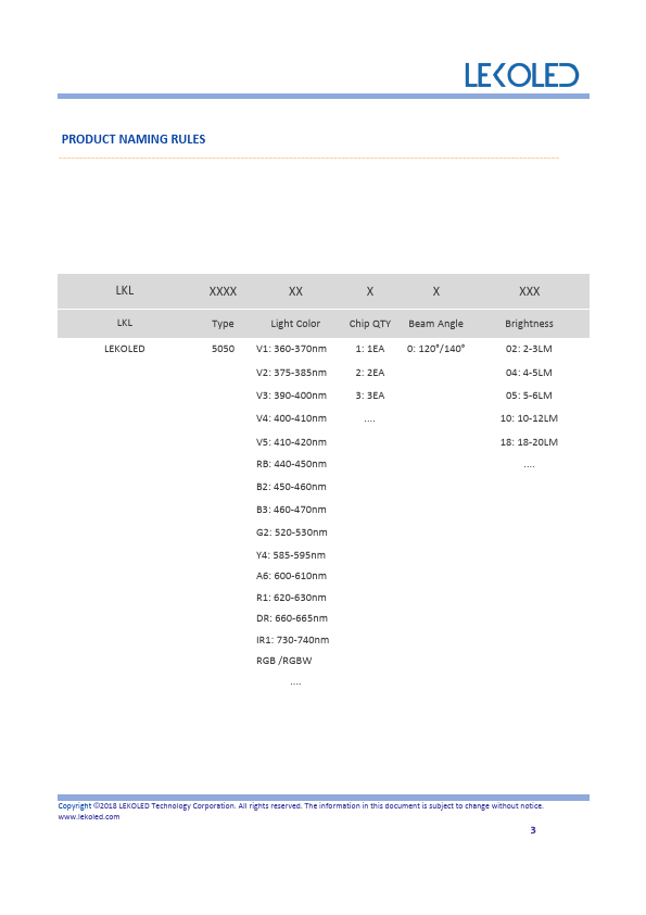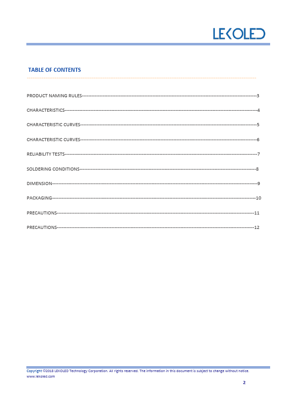 Copyright ©2018 LEKOLED Technology Corporation. All rights reserved. The information in this document is subject to change without notice. www.lekoled.
