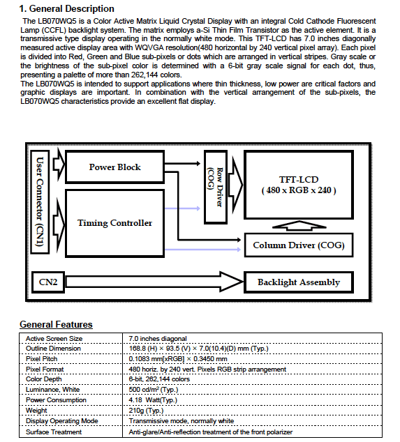 | LB070WQ4-TM03 | TFT LCD |