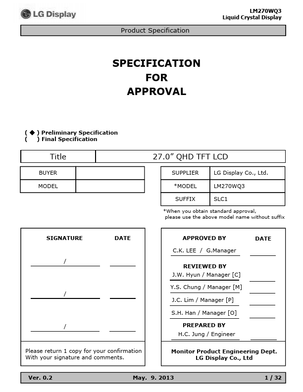LM270WQ3-SLC1 Overview