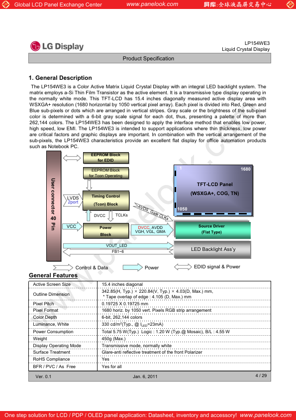 LP154WE3-TLA2 Description