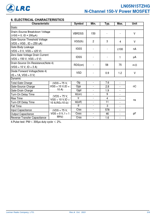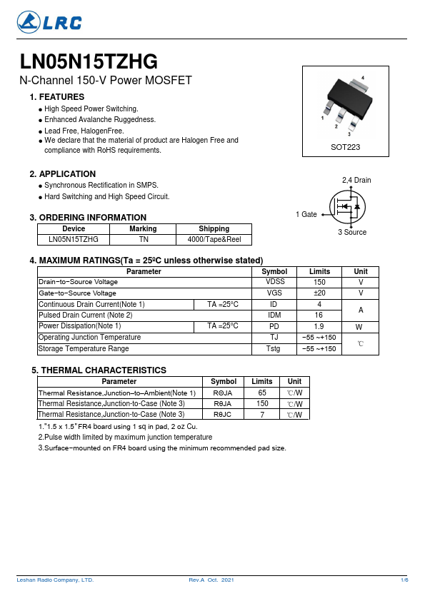 LN05N15TZHG N-Channel 150-V Power MOSFET.
