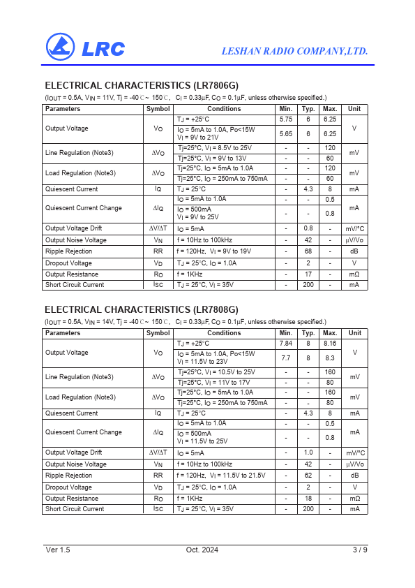 The LRC LR78XXG family is monolithic fixed voltage regulator integrated circuit. They are suitable for applications that required supply current up to 1.