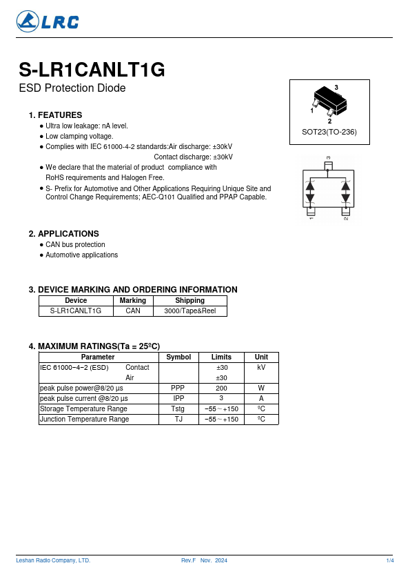 - plies with IEC 61000-4-2 standards:Air discharge: ±30kV