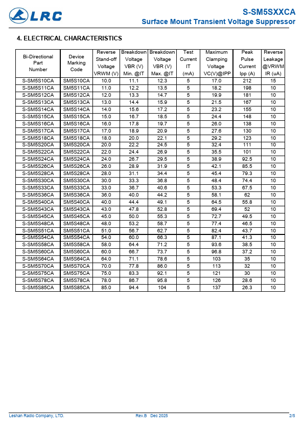 S-SM5SXXCA Surface Mount Transient Voltage Suppressor.