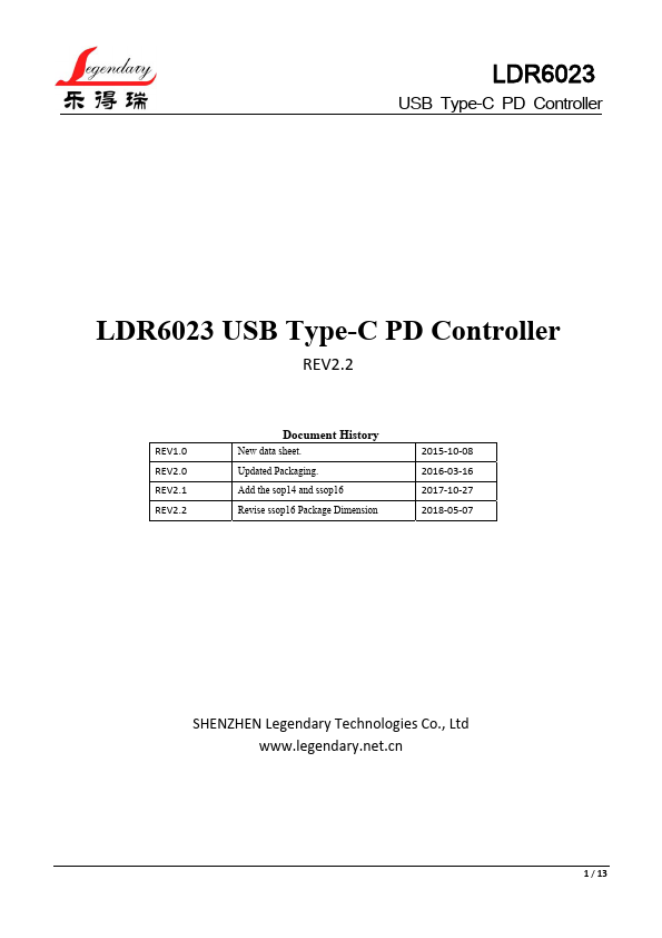 LDR6023 is a dual USB-C DRP interface USB PD communication chip developed by Legendary Technologies Co, Ltd for Bridge devices in the USB Type-C standard. With the function of transparently transferring power negotiation data packets, switching the data role , and enabling the intelligent device by VDM negotiation to enter the ALT Mode output DP signal, It especially applied to USB TYPE-C Docking and HUB applications.